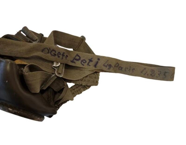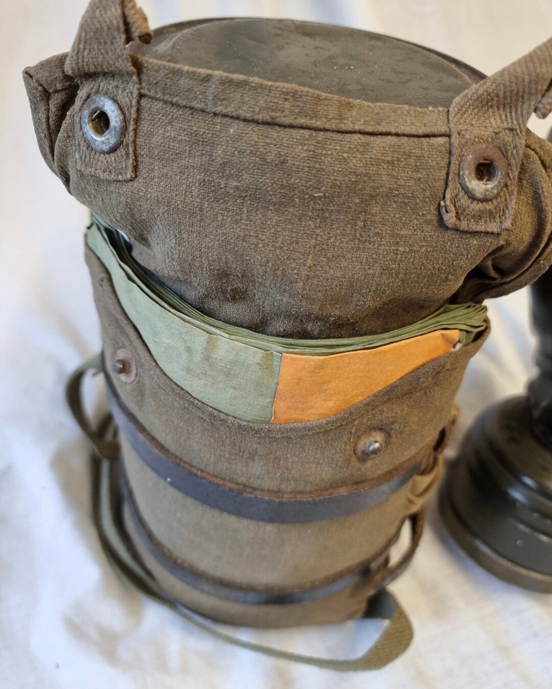 A fantastic rare original ww2 german luftwaffe gasmask set in superb condition 1941 dated! The gasmask itself is in very good supple condition. Canister is painted in luftwaffe blue also comes with it's original gas cape and leather carrier straps in good condition. This particular gasmask set belonged to a luftwaffe soldier who was based in Paris "LG. P.R.PETRI. L.23569." Also comes with capture paper which was found in the spare lenses Compartment, Overall a fantastic set!