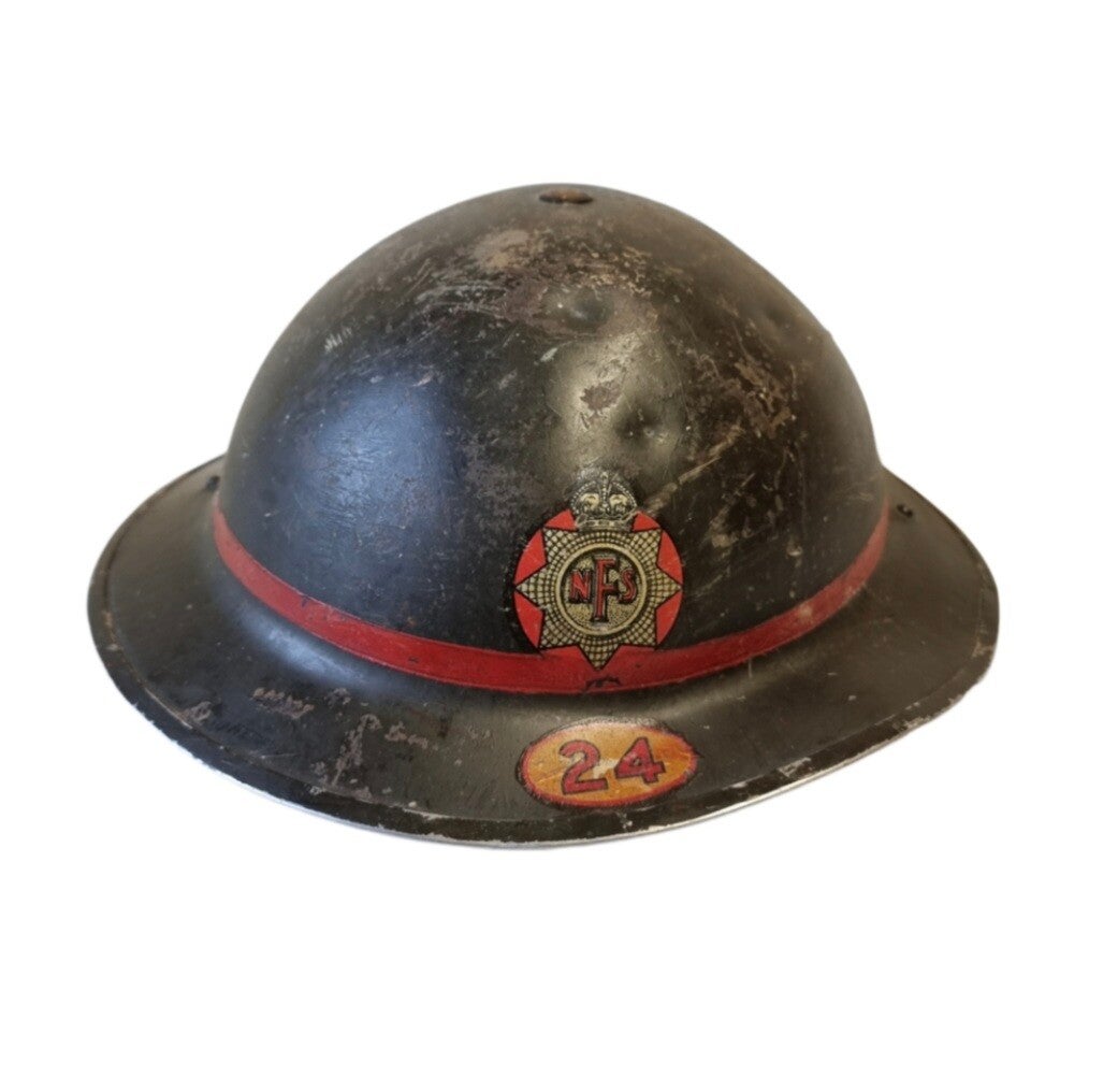 Original WW2 NFS 24 (Birmingham) Blitz damaged Helmet 1939